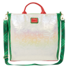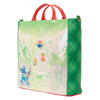 This tote bag features Stitch sitting beside a Christmas tree with presents all around. The front of the bag features perforated faux leather. Enamel pins in the shape of ornaments are included with this bag. You can attach the pins on the perforated faux leather and decorate the tree! The sides of the bag feature holiday-themed plaid and the back of the bag features several holiday symbols like ornaments and snowflakes against a pearlescent material.