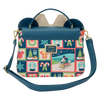 This crossbody bag is inspired by Disney's Minnie Mouse! You'll find an all-over pattern that features padded debossing of snow globes, candy canes, wreaths, snowflakes, and more. You'll find a moulded metal rivet of Mickey Mouse's silhouette on the front flap. You'll also find applique ears and Minnie Mouse's bow at the top!