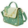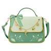 This crossbody bag is inspired by Disney’s Tinker Bell! You'll find sequin details on the sides of the bag. The front features embossed designs, leaves, a satin bow, and metal charms of a keyhole, bell, Tinker Bell, a thimble, and a star! It's an elegant and festive accessory that'll go with any outfit you put together this season!