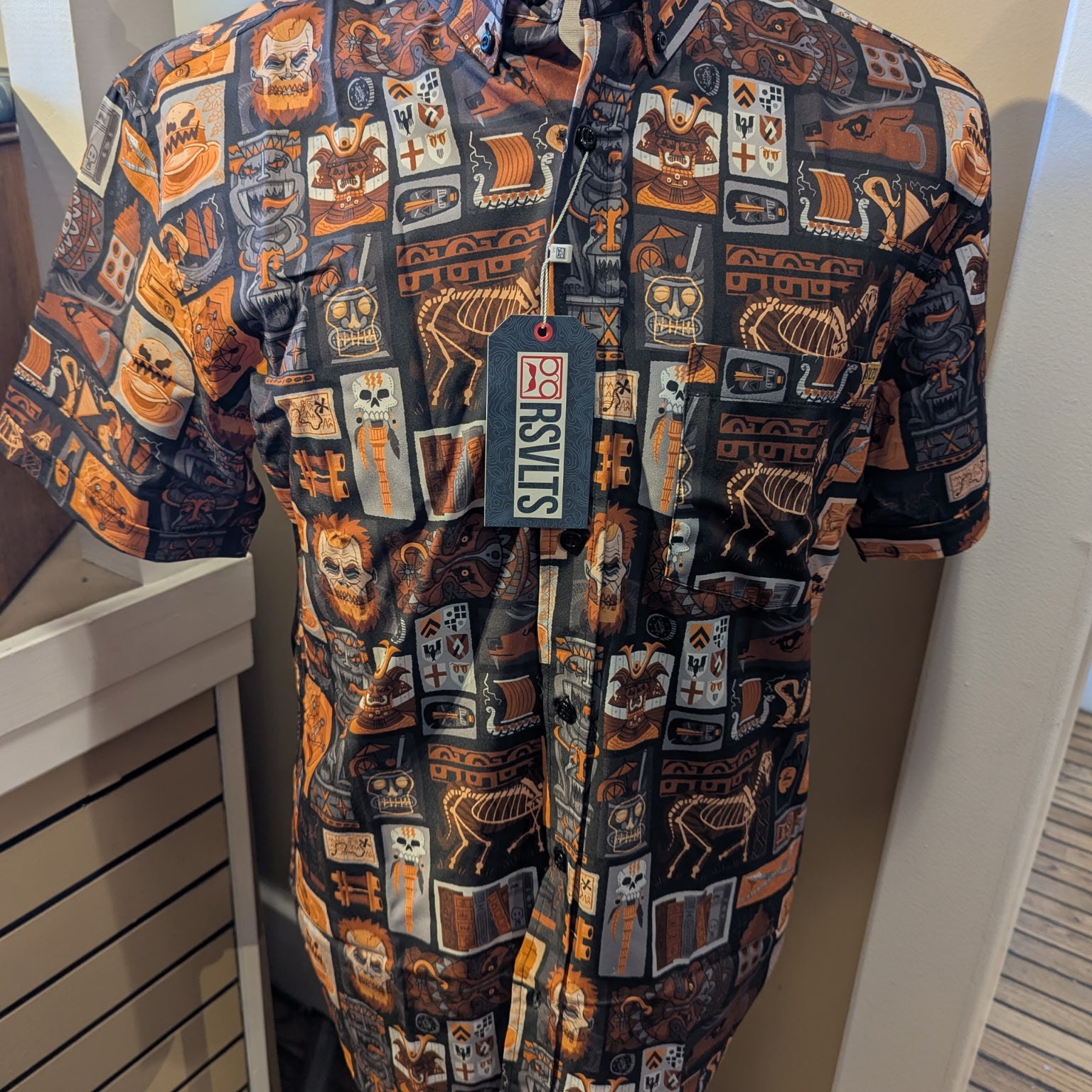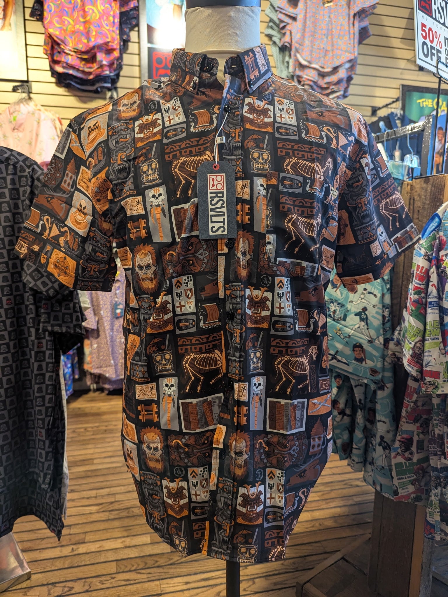 This Hawthorne's Hideout Halloween 2025 KUNUFLEX Button-Down Shirt was created in partnership with our friends at RSVLTS to celebrate the opening of Stage Nine's newest and greatest experience: Hawthorne's Hideout at Stage Nine!