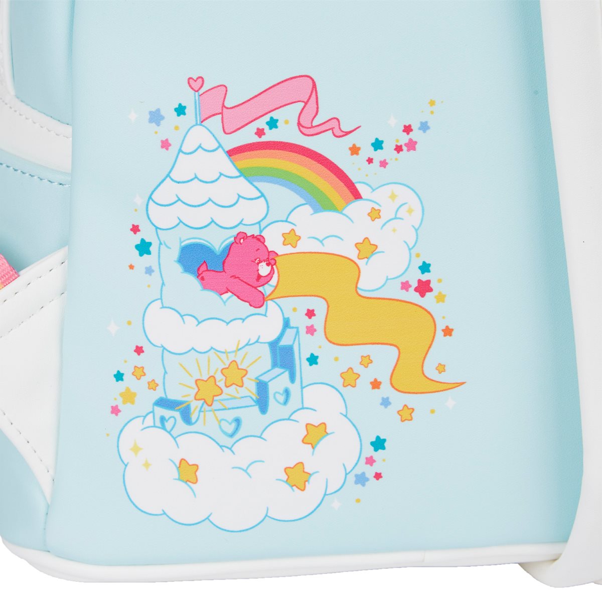 The Caring Meter is set all the way to “rainbow” in the Kingdom of Caring. Take the sunshine with you when you wear this 40th Anniversary Collection Loungefly Care Bears™ 40th Anniversary Mini Backpack. The Care Bears™ have gathered around the Care-A-Lot Castle to spread love and joy.