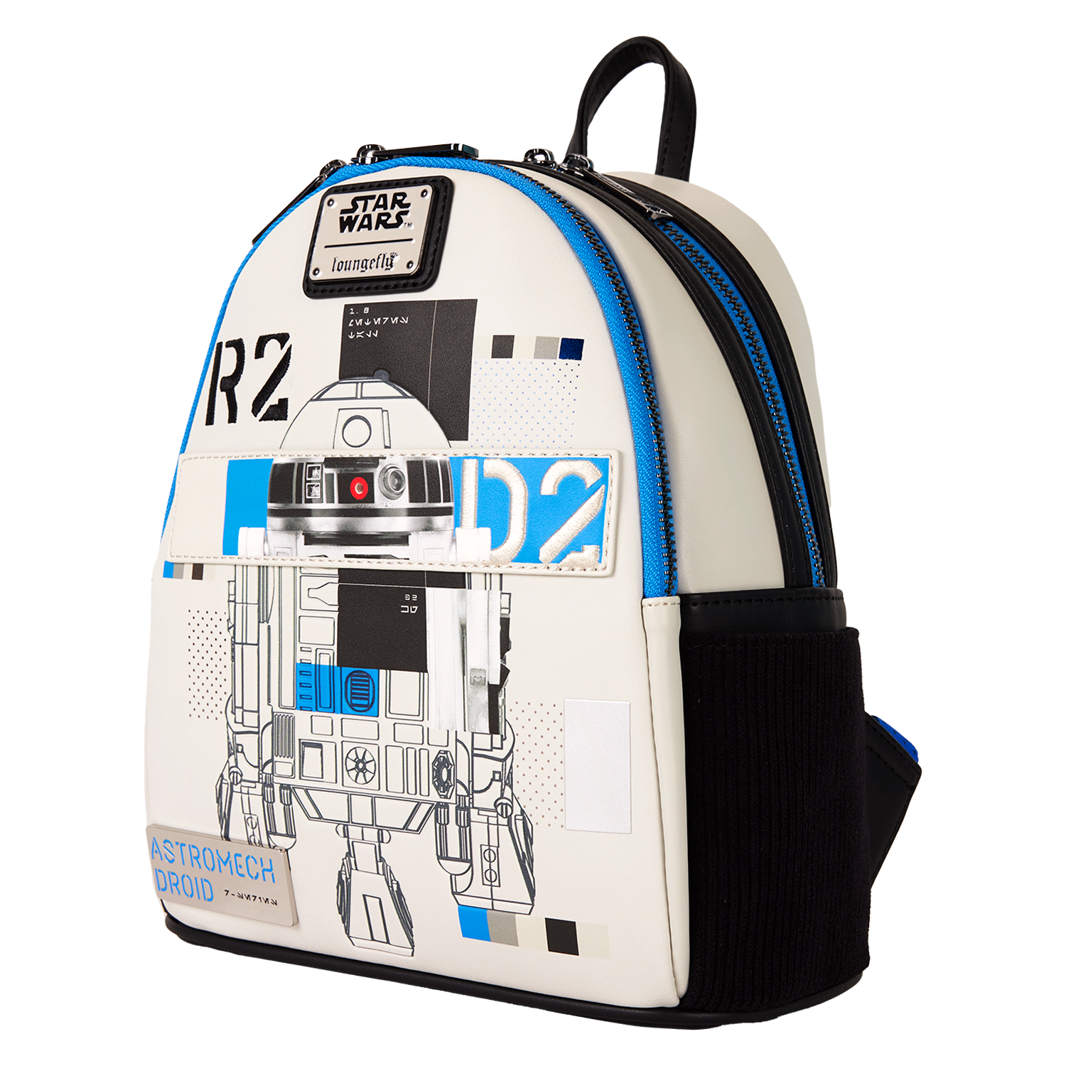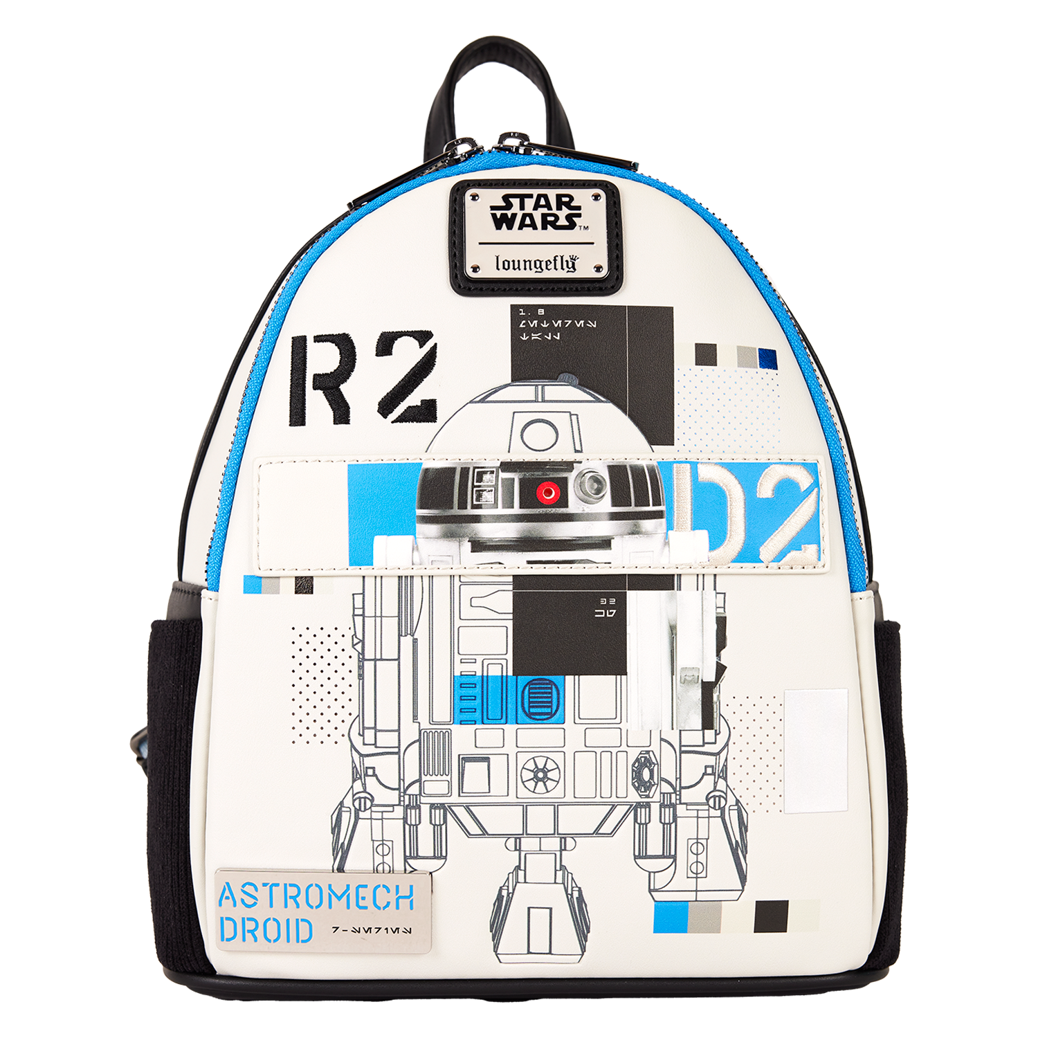This is a pretty epic mini backpack inspired by R2-D2! You'll find the beloved droid on the front of the bag in foil, debossed, and embroidered detail.