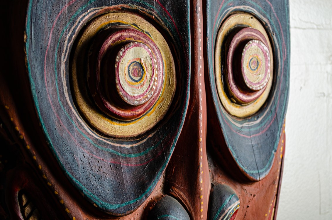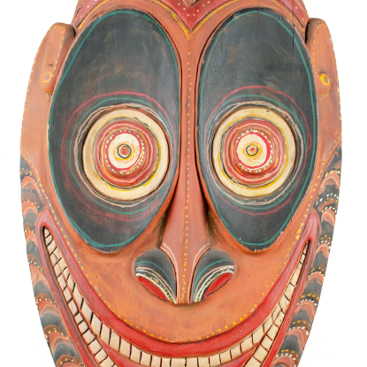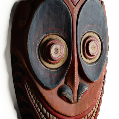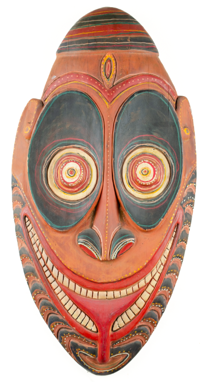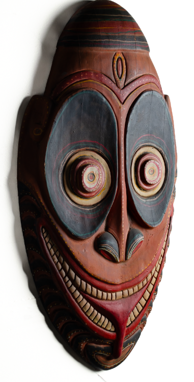 This is one of the most famous tiki mask designs used throughout the commercial Polynesian Pop industry with repeated use at Disney theme parks and resorts. In fact, Disney has used this creation in a good deal of themed merchandising. One of a kind, and rarely seen by the public.