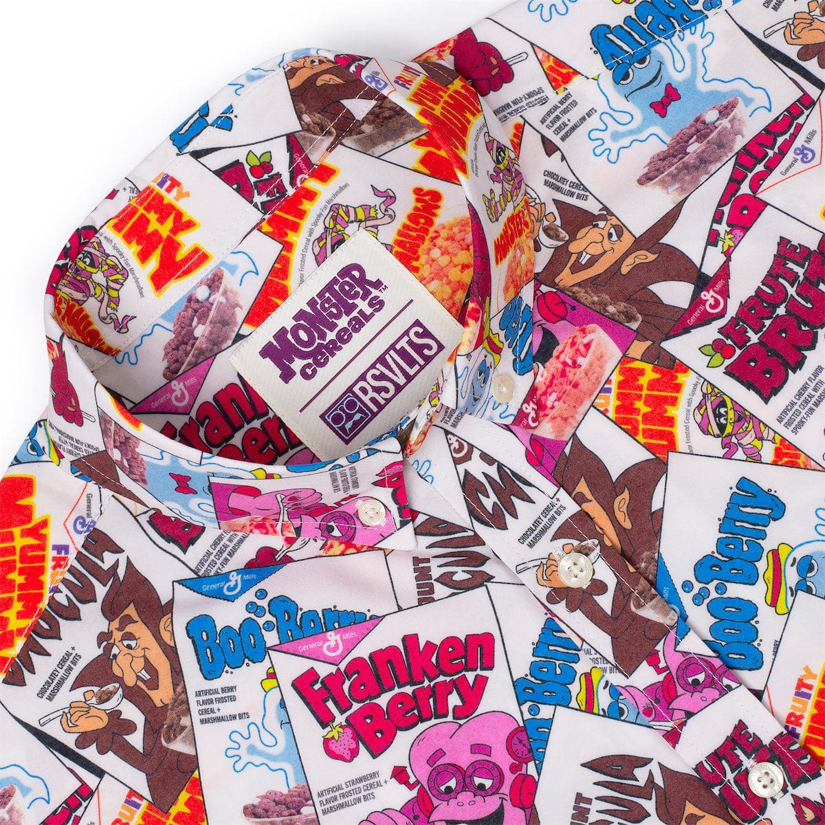 This KUNUFLEX™ button down resurrects General Mills’ OG monster squad – Count Chocula, Boo Berry, Franken Berry, Frute Brute, and Yummy Mummy – splashed wall-to-wall like the world’s greatest cereal aisle.