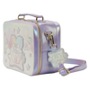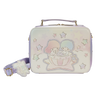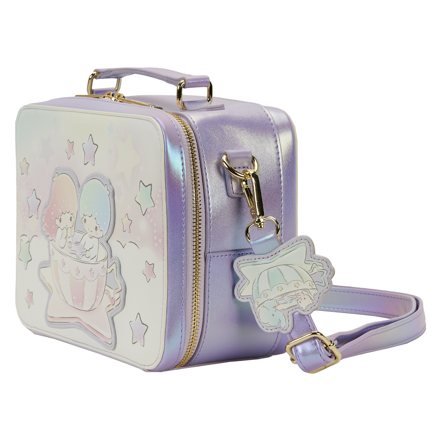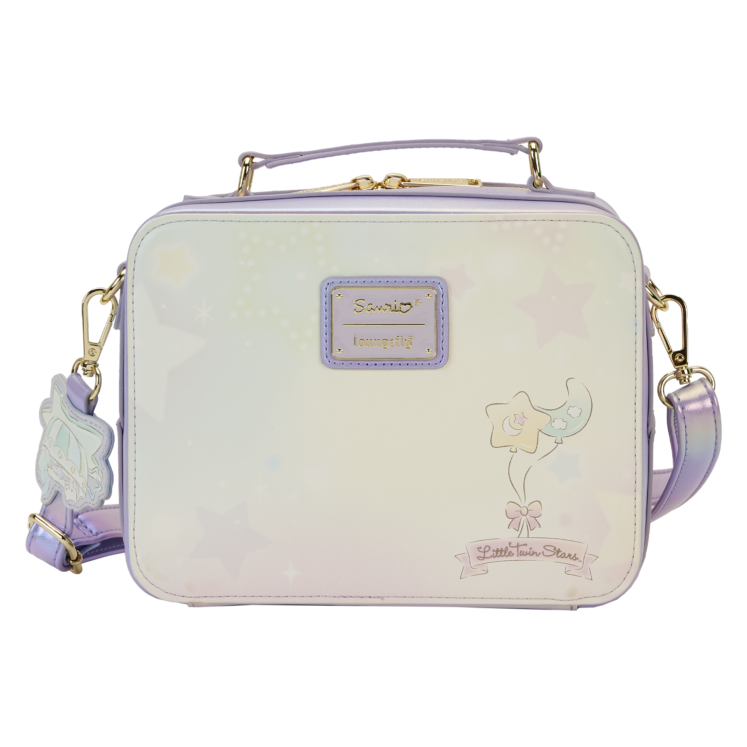 The Loungefly Little Twin Stars Carnival Crossbody Bag is made of vegan leather (polyurethane) with iridescent trim. Bag has adjustable (detachable) shoulder strap and shiny gold hardware. Additional features include applique, debossed, iridescent, and printed details. Take note of the coordinating inside lining.